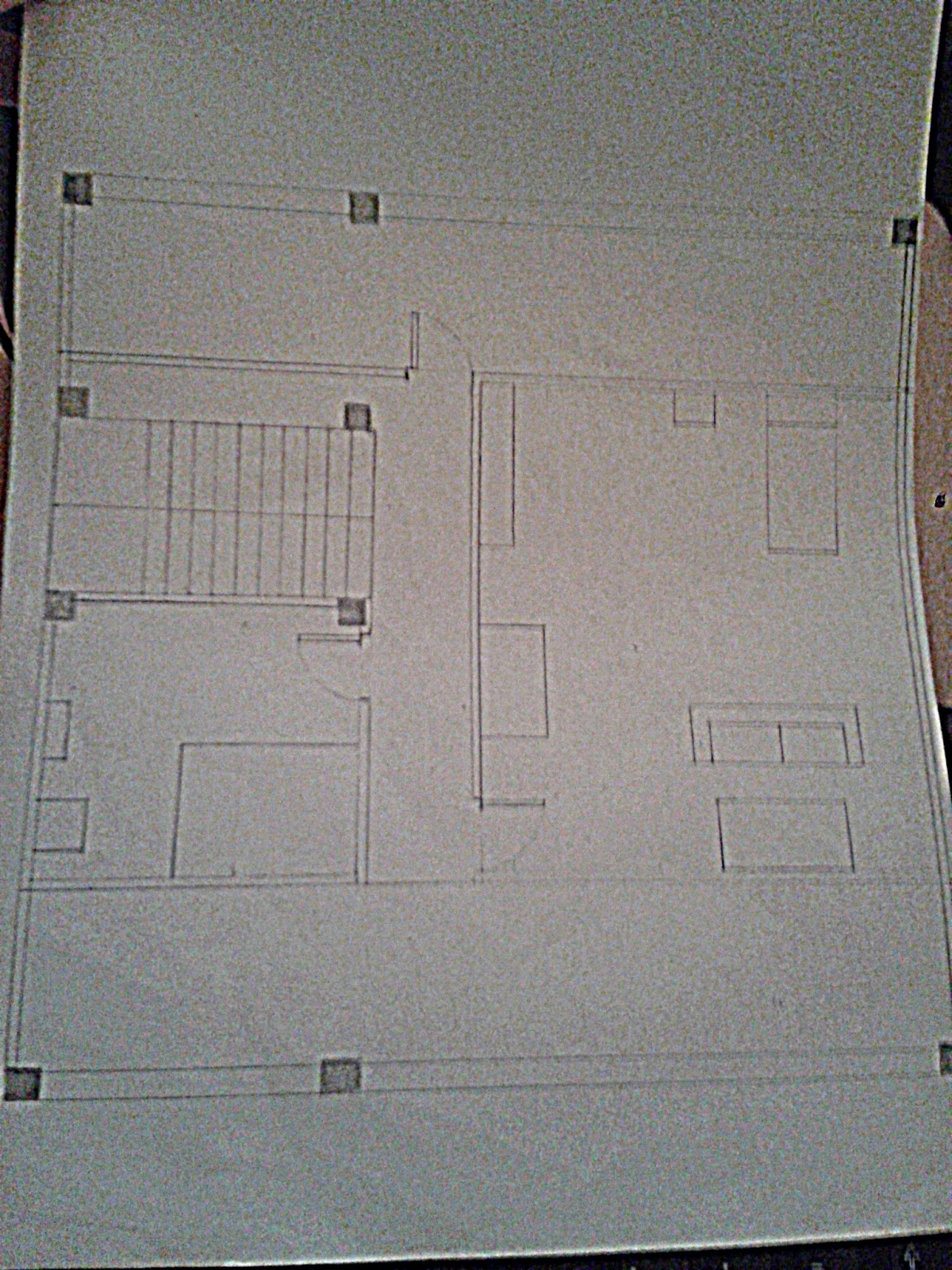 Tras haber hecho los planos a "ojo" el siguiente paso es hacerlos con escuadra y cartabón a escala 1:50 en un folio blanco. Corrigiendo así las imperfecciones observadas en el plano de la hoja de cuadros y haciéndolo lo más perfecto posible.